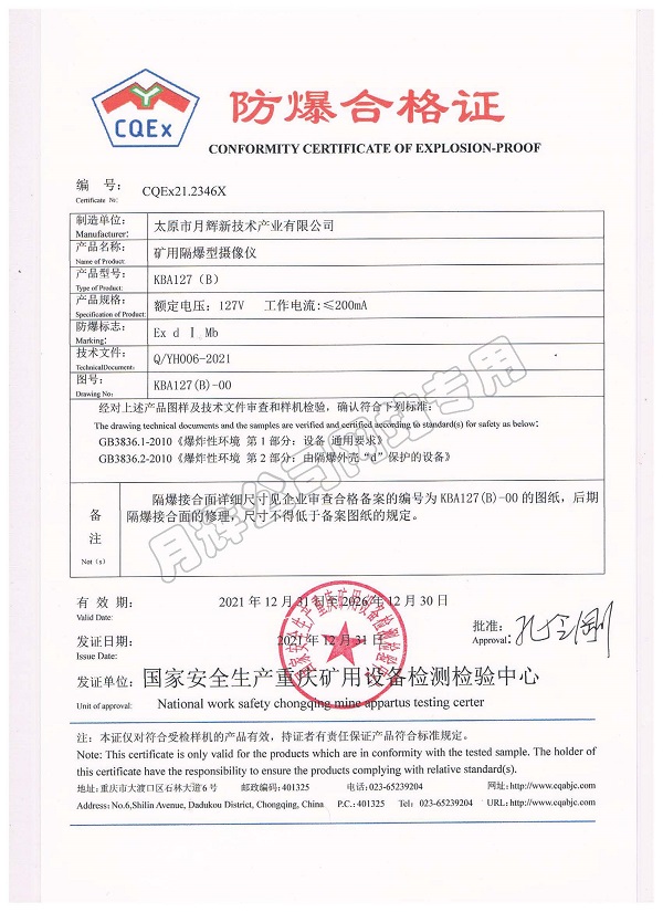 KBA127(B)礦用隔爆型攝像儀為業內優質產品,采用電動數字高清機芯,上電自動對焦、自動調整光圈,紅外輔助光源效果好,圖像清晰度高,移動靈活方便,應用領域廣,是煤礦工業電視圖像監視系統中對主要生產環節、要害場所、重要設備及關鍵崗位進行實時圖像監視的關鍵設備。
